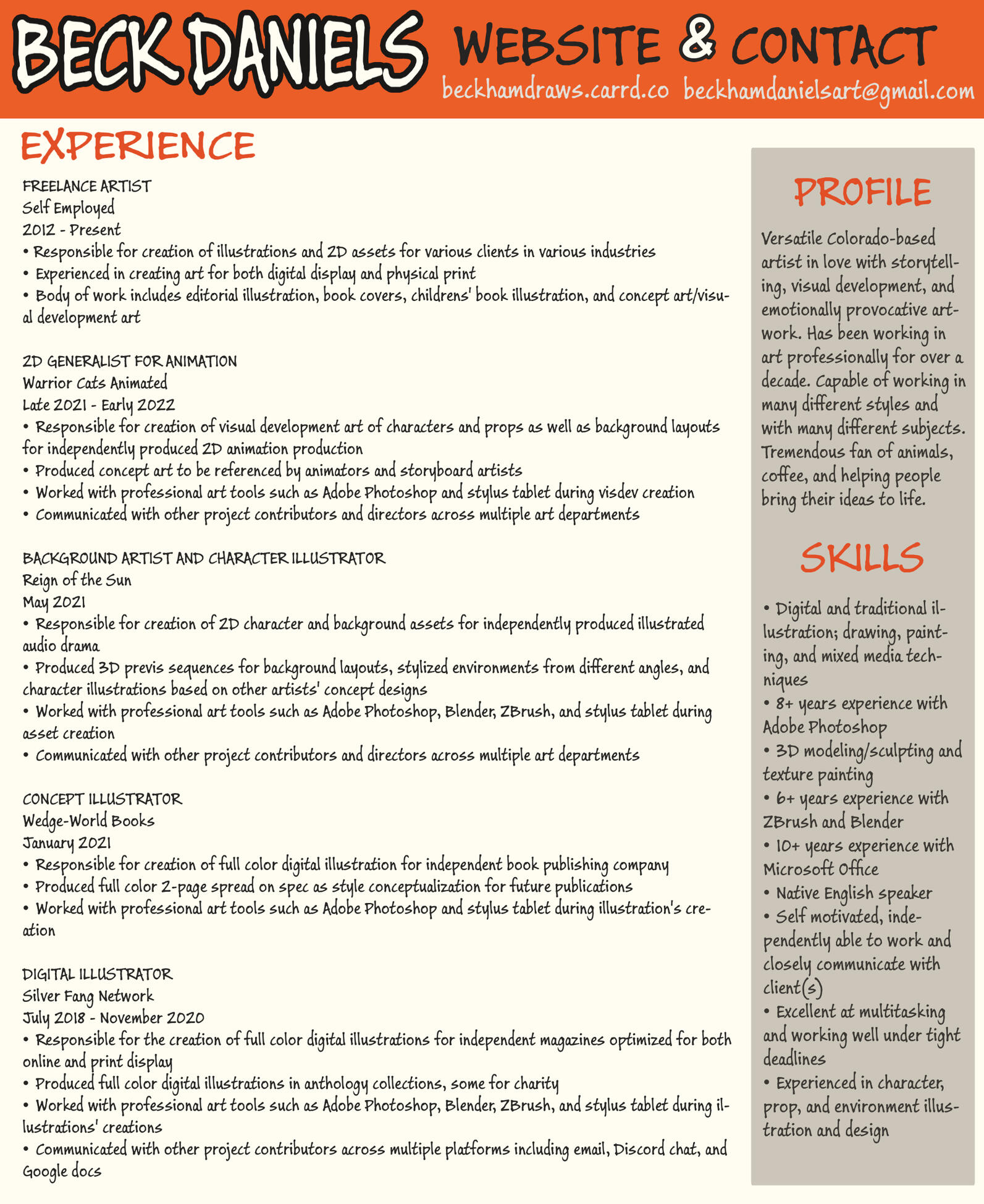 My name is Beckham, and I draw.I'm a Colorado resident with a history of serial doodling. I've been working as a primarily freelance artist since 2012, dipping my toes in a little bit of everything along the way. Self directed, innovative, and always ready to learn, my work has spanned everything from magazine spreads to kids' books to concept design and asset creation for indie animation projects. I have experience with many different disciplines including but not limited to matte painting, sequential art, photobashing, 3D modeling and sculpting, and visual development, most of which I regularly combine in order to create new, unique concepts. I pride myself in being able to work in a wide variety of styles and creating art for a wide variety of uses.Whatever you need drawn, I can do it for you! Drop me a line, tell me about your project, let me know your budget, and we'll go from there.